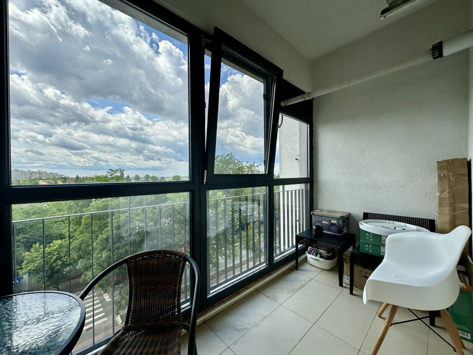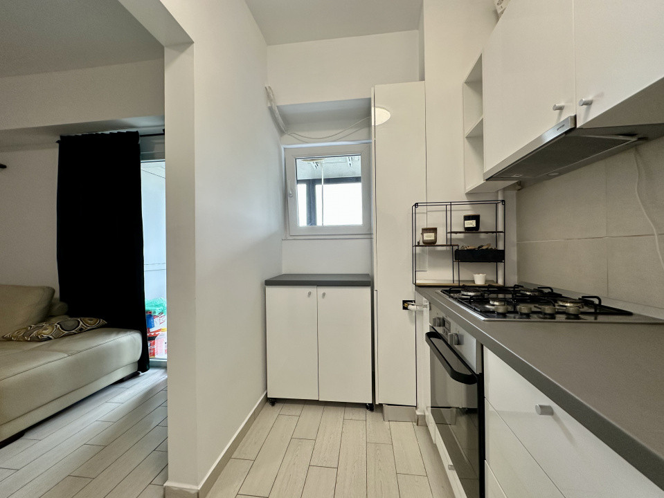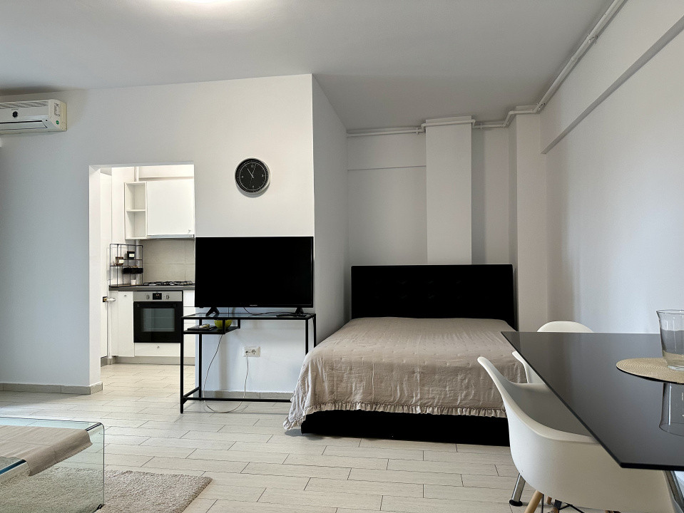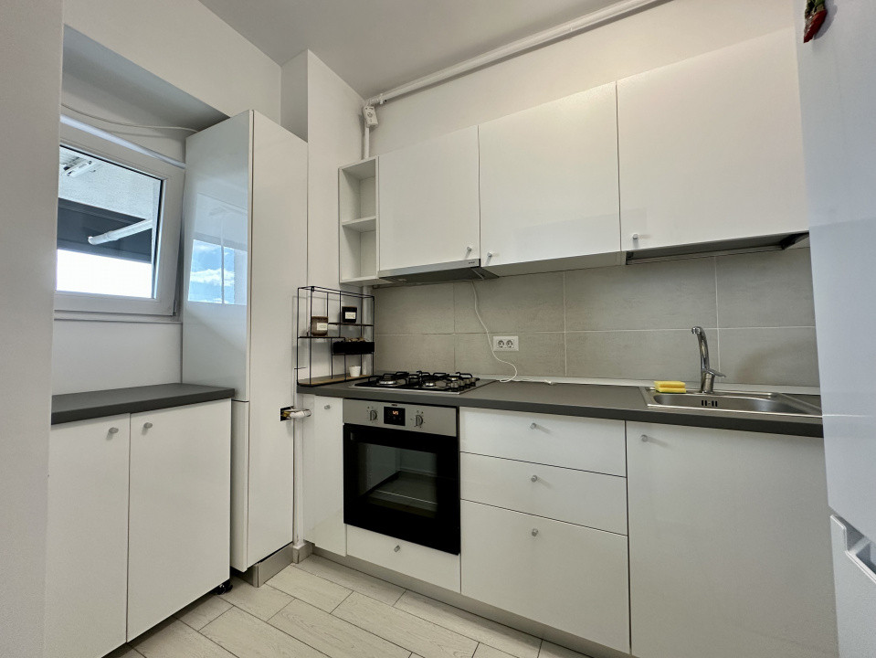 Garsoniera este situata la etajul 4, este complet mobilata si utilata, beneficiaza de centrala termica si un balcon inchis cu o priveliste superba asupra Complexului Comercial.